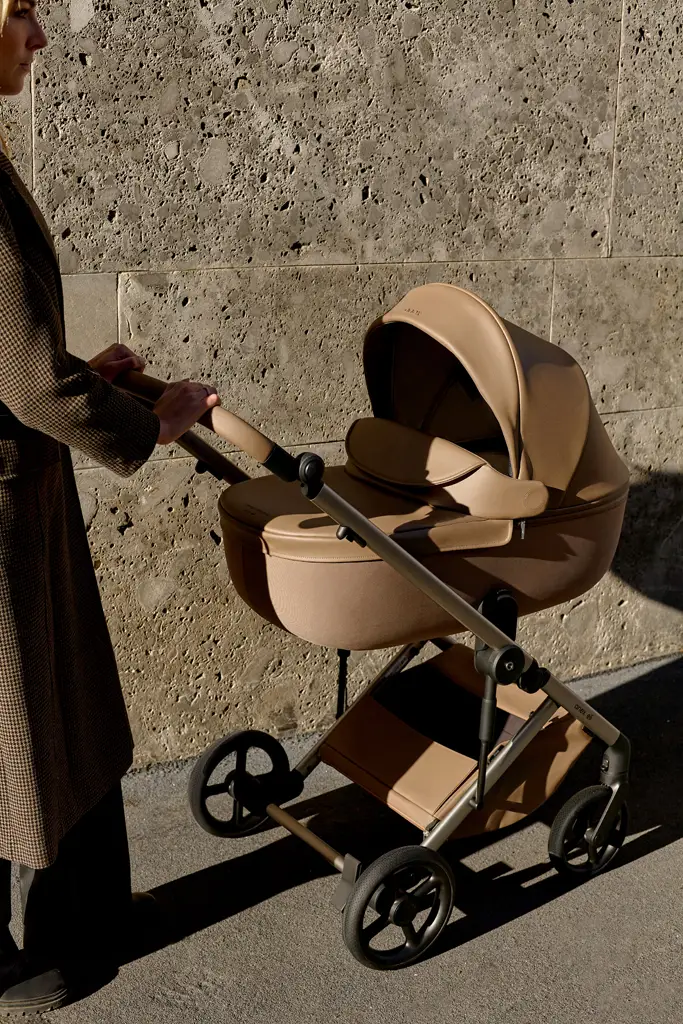 Anex Eli je vytvorený s ohľadom na ergonómiu, aby zabezpečil rodičom nekompromisný zážitok z dizajnu a funkčnosti. S ekokožou pôsobí kočík prirodzene a úžasne elegantne. Malé, ale pevné kolesá zaisťujú plynulý pohyb po meste, zatiaľ čo kompaktná a praktická taška obsahuje všetky potrebné veci pre rodičov a deti pri cestovaní.