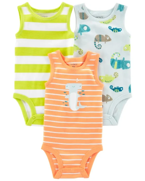 Doručenie CARTER'S Body bez rukávov Stripes Animals chlapec 3ks 12m