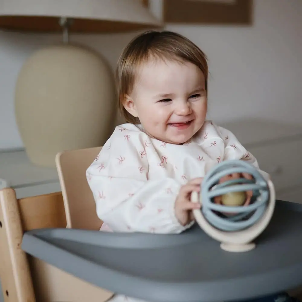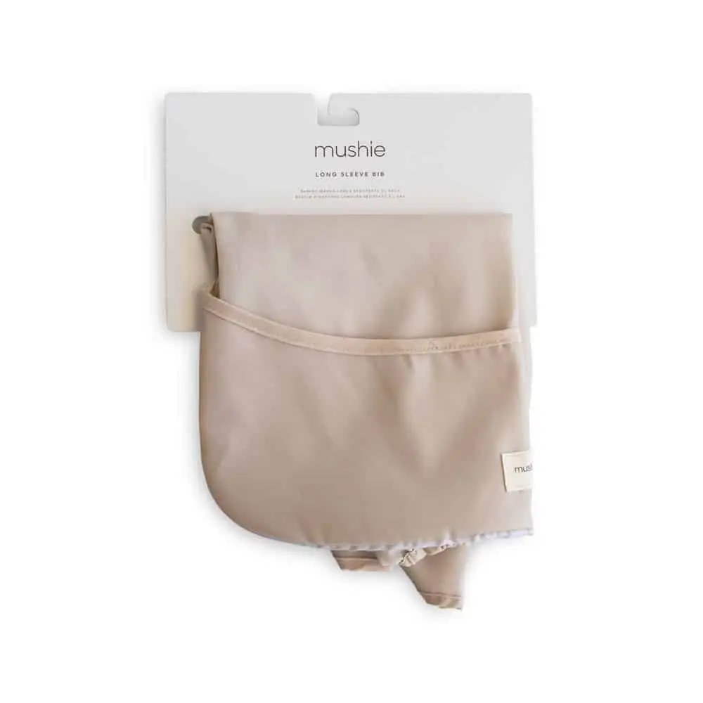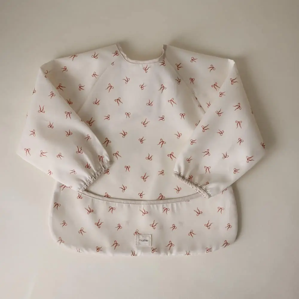 Podbradník s dlhým rukávom od značky Mushie pre bezproblémové jedenie!