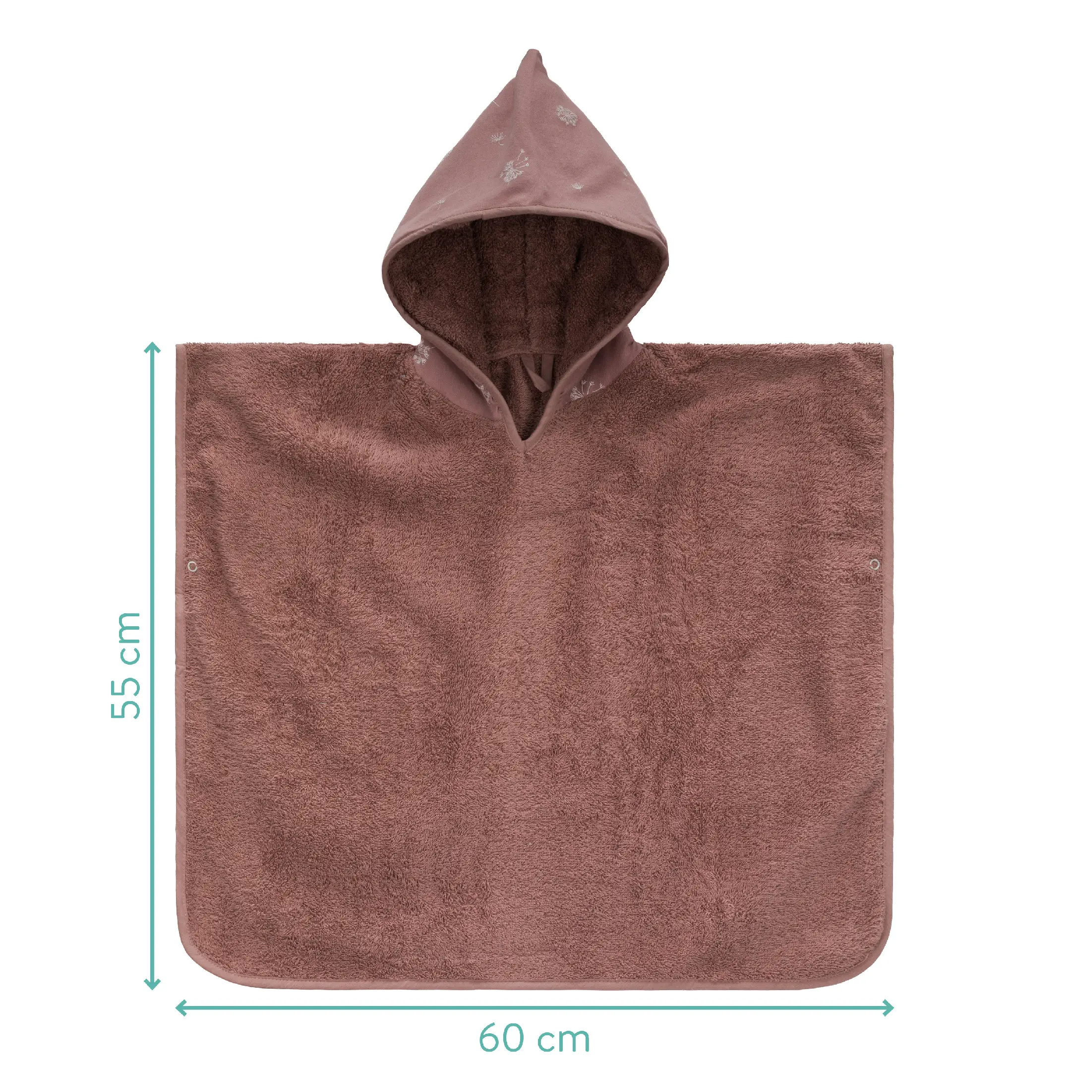 Kapucňa a roztomilá potlač na prednej strane dodávajú ponču jedinečný vzhľad. Na bokoch sú dve patentky, ktoré zabraňujú zošmyknutiu ponča a zároveň poskytujú dieťaťu dostatok voľnosti pohybu.