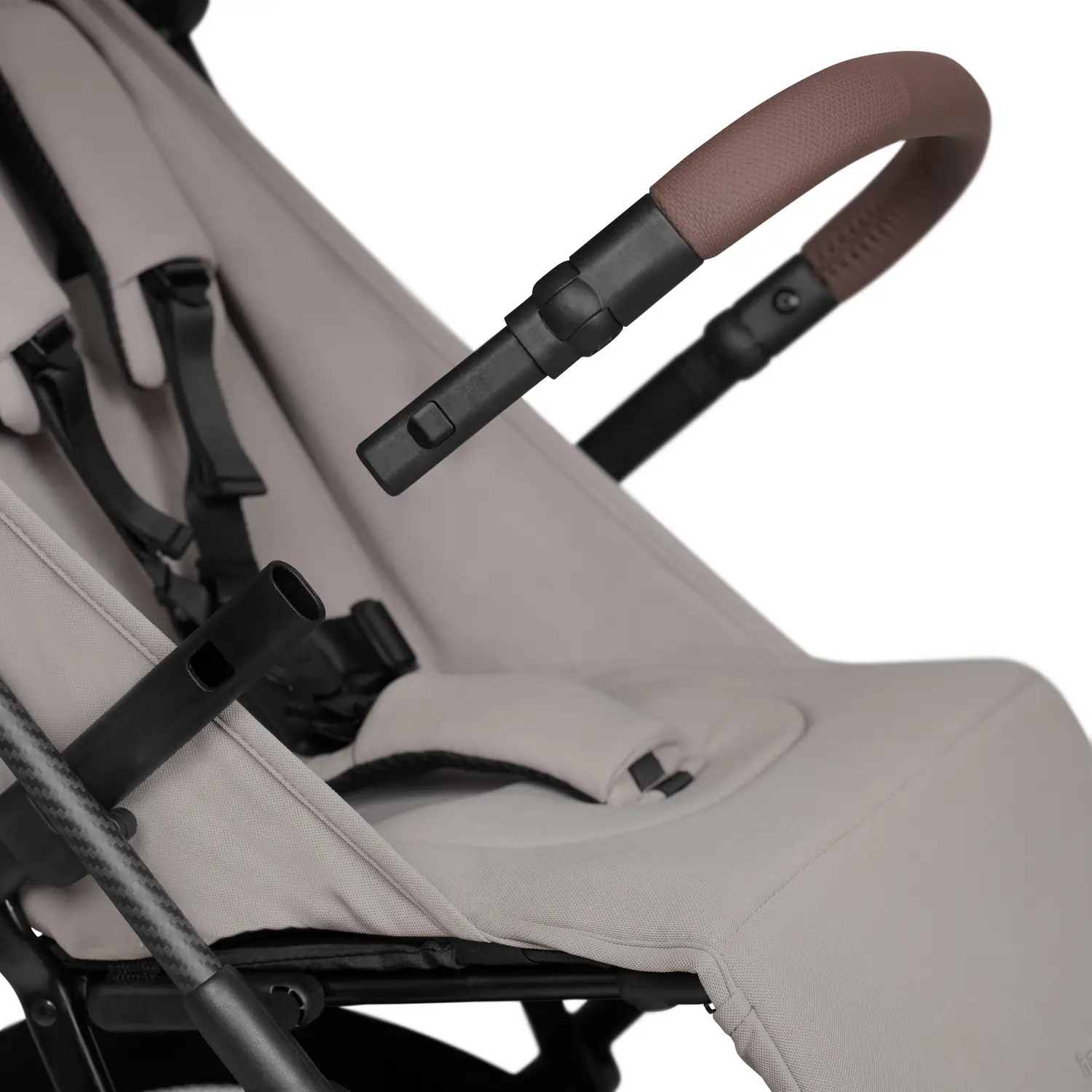 VYSOKOKVALITNÝ VZHLAD VĎAKA ELEGANTNÝM DETAILOM // Športový a elegantný: kombinácia vysokokvalitného rámu z uhlíkových vlákien a elegantného koženého vzhľadu rodičovskej rukoväti a ochranného oblúka vytvára moderný vzhľad, ktorý dokonale spája dizajn a kvalitu.