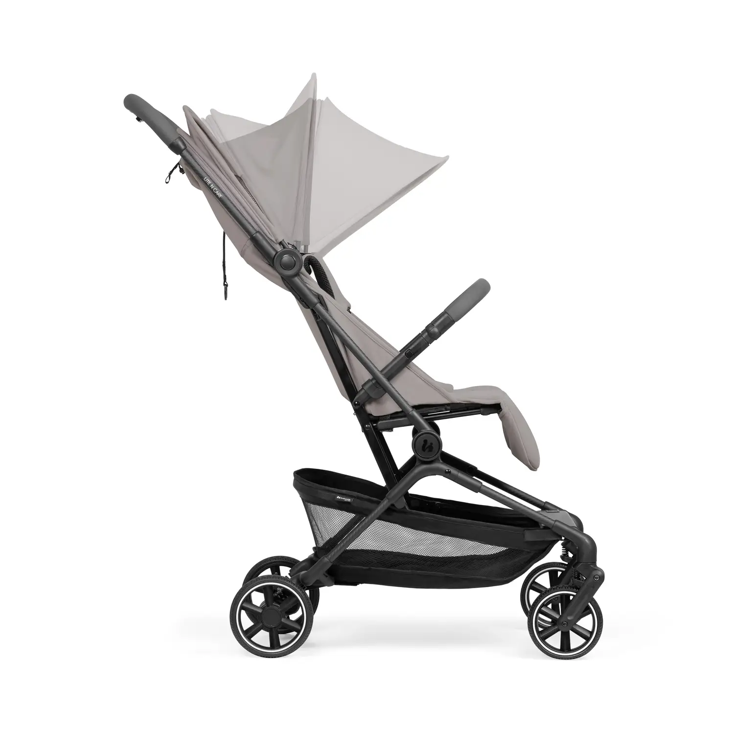 IDEÁLNY NA CESTOVANIE A VÝLETY // Letisko, vlaková stanica, autobus: kočík LITE-N-CARE sa dá kompaktne zložiť jednou rukou a jeho rozmery spĺňajú požiadavky mnohých leteckých spoločností na príručnú batožinu (v súlade s IATA).