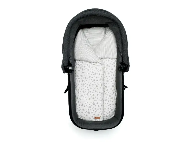Fusak s teplou výplňou do kočíka je možné premeniť na obojstrannú detskú deku. Zips v spodnej časti bráni odkrytiu nožičiek, suché zipsy umožňujú otvorenie a upevnenie bočných chlopní.