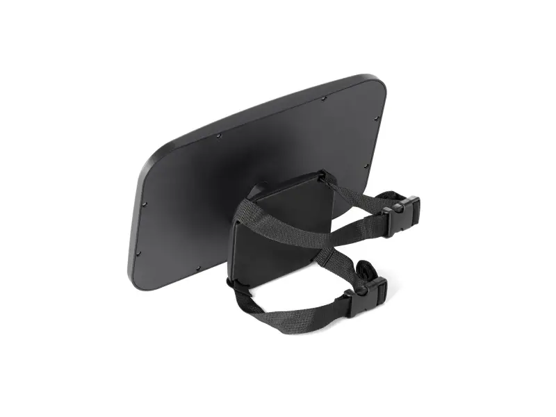 Extra veľké zrkadlo na monitorovanie dieťaťa sediaceho v autosedačke proti smeru jazdy na zadnom sedadle. Otočný ohybný mechanizmus a konkávny tvar umožnňujú nastavenie ideálneho zorného uhla, zamykací systém zabraňuje pohybu zrkadla počas jazdy.