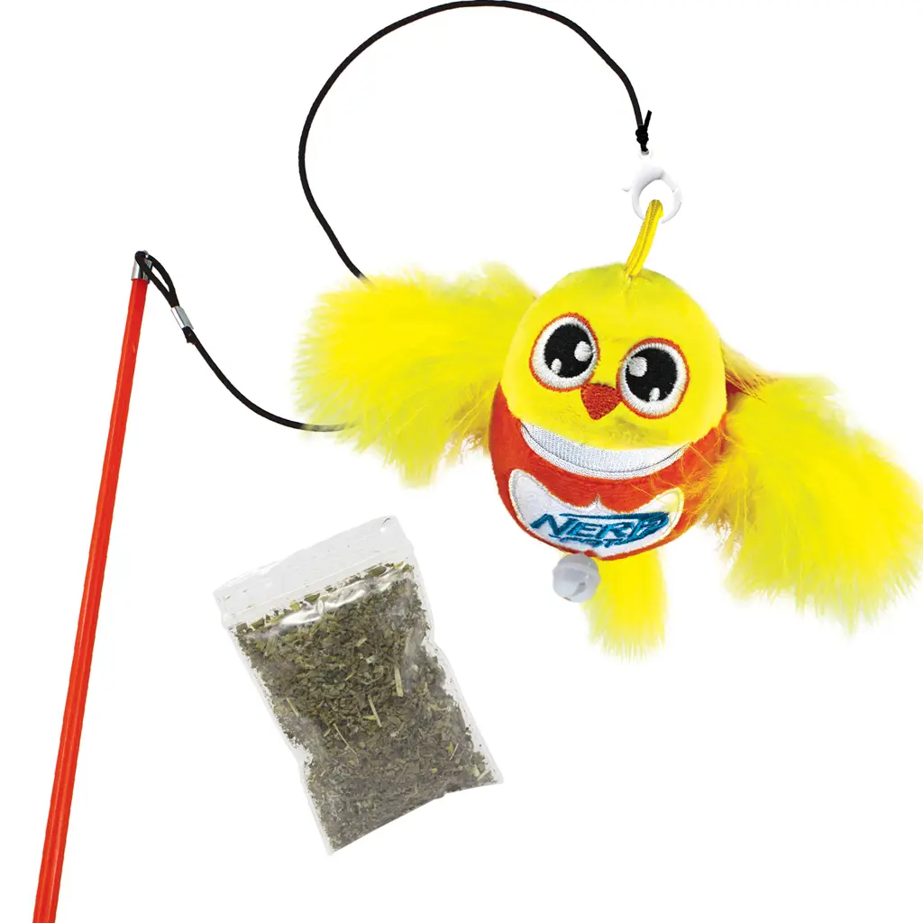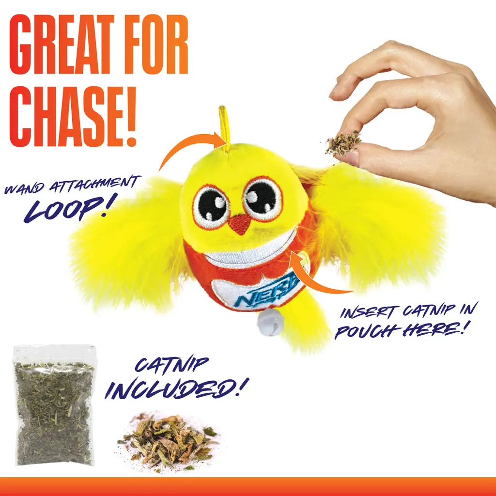 Doručenie NERF CAT Hračka pre mačky plyšový vtáčik s rolničkou a paličkou 9 cm