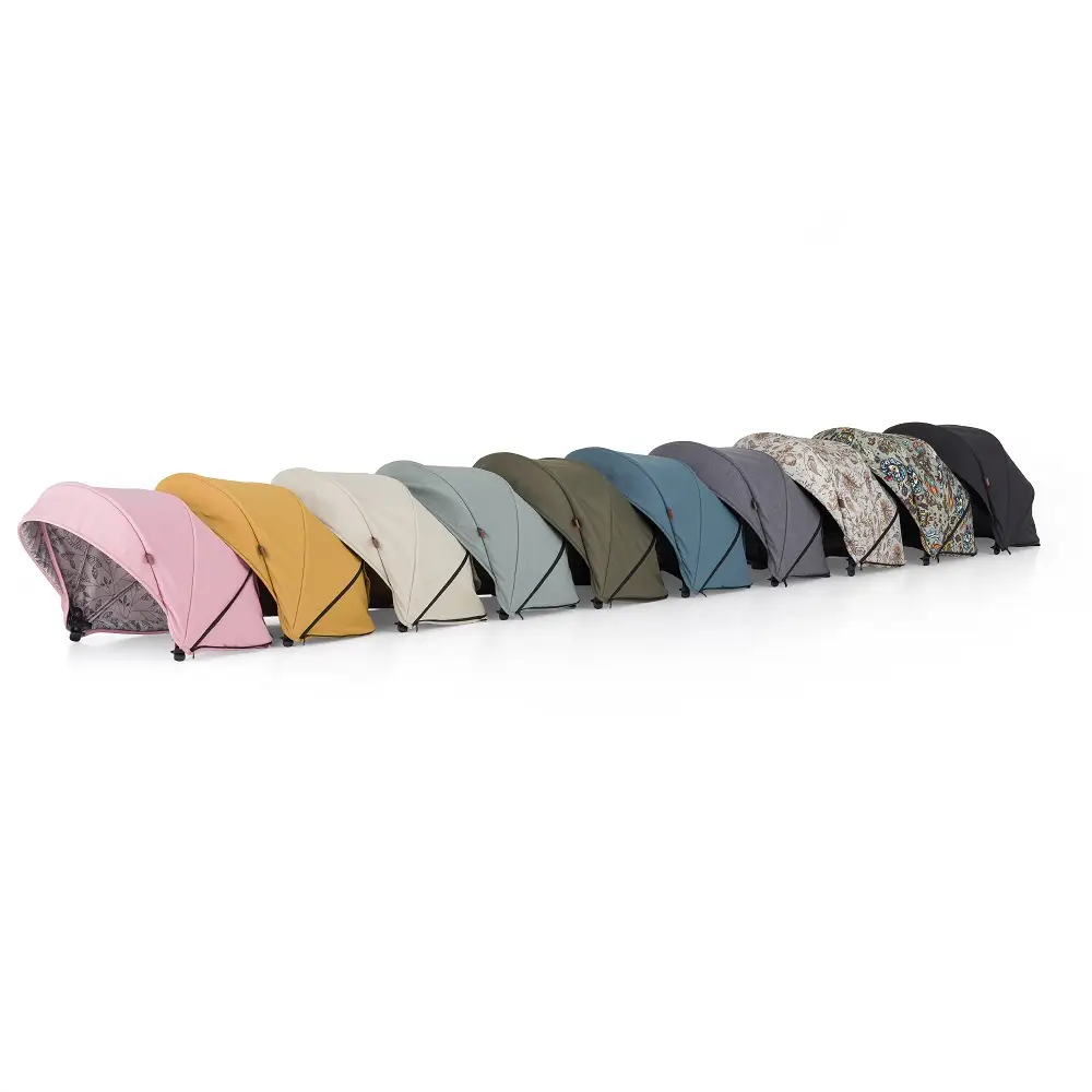 Vyberte svojmu kočíku farbu striešky aká sa Vám momentálne páči a dajte mu tak jedinečný vzhľad. Je len na Vás akú striešku kočíka zvolíte. Jeden kočík na veľa spôsobov. Ku strieške vždy dostanete aj zladenú obojstrannú vložku a polstrovanie na bezpečnostné popruhy.