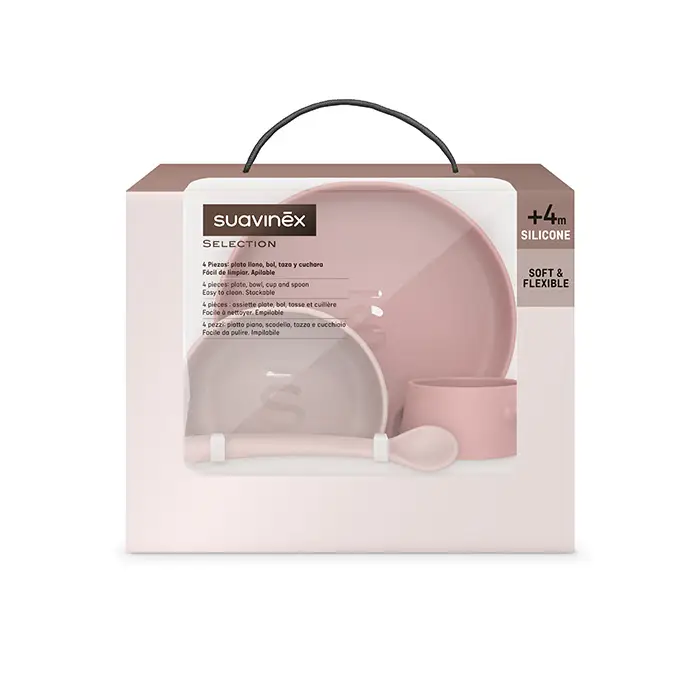 SUAVINEX Jedálenský set silikonový COLOUR ESSENCE - ružový