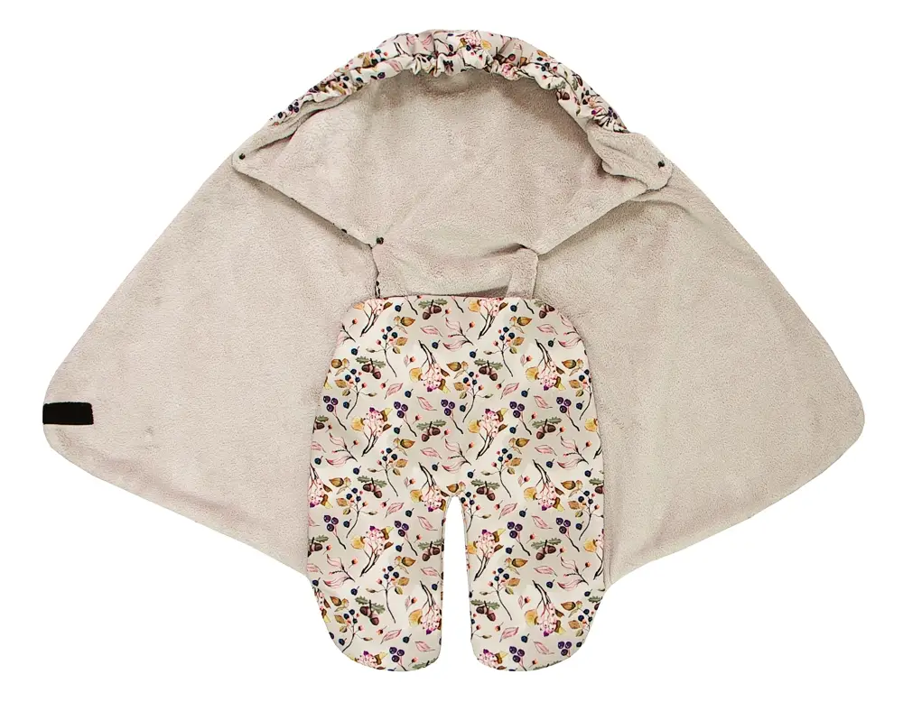 Praktické otvory pre detské rúčky, vhodné pre deti, ktoré rady hýbu rúčkami a neznášajú pocit stiahnutia v zavinovačke. Stiahnutím šnúrok v hornej časti zavinovačky vznikne kapucňa, ktorá chráni dieťa pred chladom.