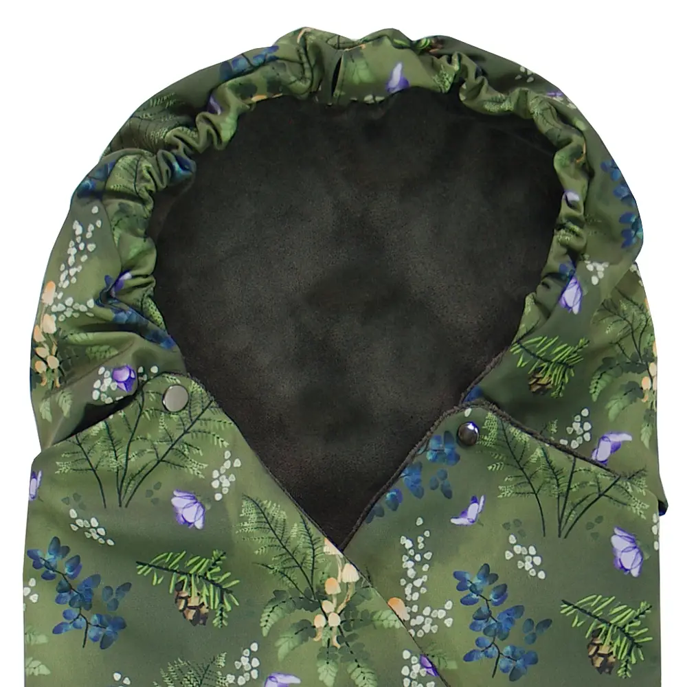 Praktické otvory pre detské rúčky, vhodné pre deti, ktoré rady hýbu rúčkami a neznášajú pocit stiahnutia v zavinovačke. Stiahnutím šnúrok v hornej časti zavinovačky vznikne kapucňa, ktorá chráni dieťa pred chladom.